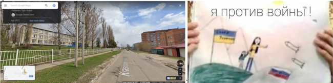 To po lewej to szkoła nr 9 w Jefremowie, w Rosji, w obwodzie tulskim. Gdzie 13-letnia dziewczynka narysowała tej oto rysunek po prawej: „ja jestem przeciw wojnie”. Dziewczynka trafi do sierocińca, bo ojca aresztowano i pobito na komisariacie, a miejscowy sąd skazał go na 2 lata więzienia za szkalowanie rosyjskiej armii. Uciekł z domu i się ukrywa. A to Rosja właśnie. Żądna nieść swoją „cywilizację” na cały świat z pomocą swoich rakiet z głowicami atomowymi.