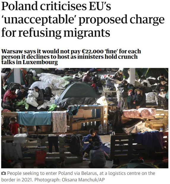 Warszawa twierdzi, że nie zapłaci „grzywny” w wysokości 22.000 euro za każdą osobę, której odmawia przyjęcia …