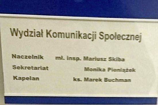 W Komendzie Wojewódzkiej Policji w Rzeszowie zatrudniony jest ksiądz. Udało się ustalić, że do jego obowiązków należy odprawianie obrządków religijnych w instytucji. Na początku stycznia ks. Buchman modlił się za nowo przyjętych policjantów. Ciekawe, czy prawo pozwala zatrudniać w policji dowolną osobę bez kwalifikacji? Może chodzi o to żeby policjanci nie biegali stale do kościoła i mogli skupić się na pracy?* * *