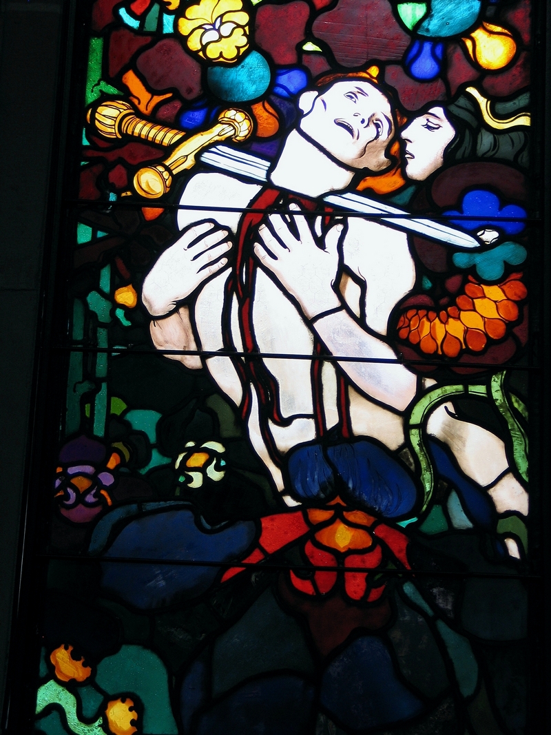 Coś swojskiego można też dostrzec w witrażu „Wiara” (1900 ) z ogromną monstrancją, choć dziś wyrazilibyśmy to pewnie innym językiem niż lwowski profesor Władysław Kozicki: „Z gorącą modlitwą na ustach zbliża się ku niej Wiara: czysta dzieweczka polska, z rozpuszczonym jasnymi włosami, z welonem i wianeczkiem margerytek na głowie”.