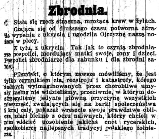 „Wielki przywódca” narodu okazuje się dziwnie mały, jeśli chodzi o osobiste niechęci i urazy. Nawet już nie mówię o Berezie Kartuskiej, coś dziś rzadko wspominanej przez wielbicieli „marszałka”, ale o mściwości w stosunku do pułków poznańskich, które w 1926 roku szły na pomoc legalnemu rządowi (co było przecież ich „psim” obowiązkiem, od tego byli), do których aż do końca II RP najrzadziej trafiały awanse, a zaopatrzenie jednostek nierzadko napotykało na „chwilowe trudności”.