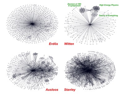 Hierarchiczność sieci idei wcale nie jest cechą uniwersalną ani charakterystyczną dla wybitnych postaci dzisiejszej nauki. Graf ilustrujący naukowe powiązania Edwarda Wittena, znanego fizyka matematycznego rozwijającego teorię strun, okazał się mieć budowę w ogólnym zarysie przypominającą prostą gwiazdę, tak dobrze widoczną u Erdősa. U Wittena widać jednak obecność kilku wyraźnych, odseparowanych od siebie podstruktur. Odpowiadają one społecznościom zajmującym się konkretnymi tematami, np. teorią wszystkiego czy fizyką wysokich energii.
