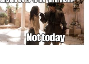 Otóż pojawia się tam fechmistrz z Braavos – państwa miasta założonego przez zbiegłych niewolników. Oprócz fechtunku uczennicy swojej wpaja także podstawy swojej religii. Jest tylko jeden bóg – śmierć. I jest tylko jedna modlitwa…