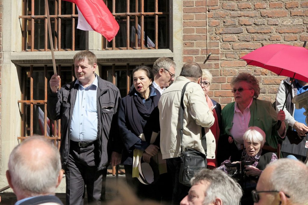 Do zebranych ze schodów Ratusza Głównego przemawiały różne osoby : profesor Penson – żołnierz ZWZ i AK i jeniec hitlerowskich obozów zagłady, Magdalena Wyszyńska, ocalała z holocaustu polska Żydówka, mieszkanka Gdyni, pracownica Państwowej Inspekcji Pracy. Ich wypowiedzi, to były głosy świadków historii. O tym, czym był faszyzm i jego nacjonalistyczne rozpasanie. Głos zabierali także inni: Henryka Krzywonos, posłanka na Sejm, uczestniczka strajku sierpniowego, marszałek Senatu Bogdan Borusewicz, a także Radomir Szumełda z gdańskiego KOD-u.