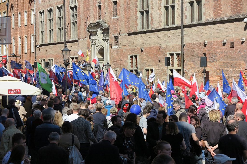 Było słonecznie, radośnie, powiewały flagi narodowe, unijne, flagi gdańskie, KOD-u, Zrzeszenia Kaszubsko-Pomorskiego. Odśpiewaliśmy hymny, hymn Polski i Unii Europejskiej, pokrzyczeliśmy co trzeba, pomachaliśmy sztandarami i po godzinie rozeszliśmy się do domów.