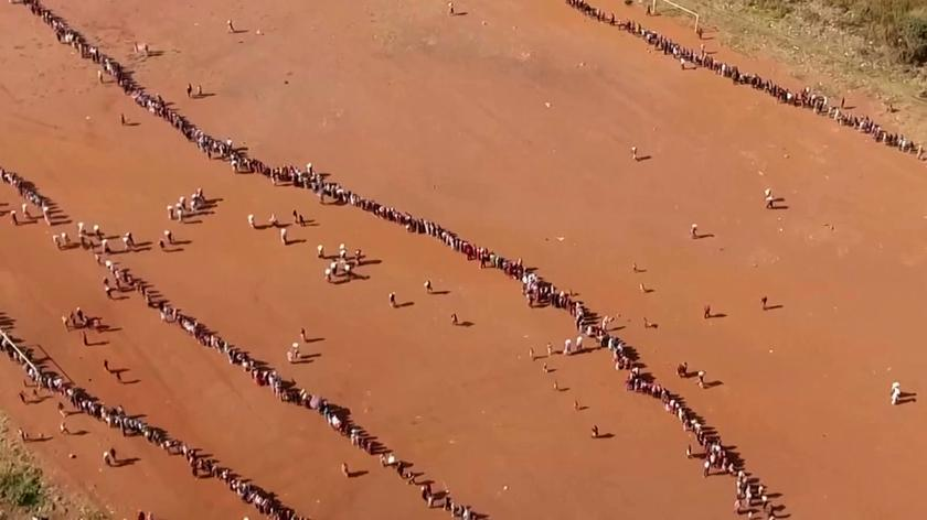Na zdjęciu widać fragment kilkukilometrowej kolejki po żywność i środki higieniczne w Pretorii. Większość czekających to cudzoziemcy, którzy uciekli do RPA. Nie mają środków do życia.