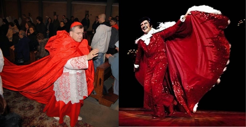 Kardynała Raymonda Burke, lubującego się w ekstrawaganckich szatach, amerykańskie media ironicznie nazywają „księciem kościelnej mody” (a prince of church fashion) i porównują do najbardziej ekstrawaganckiego (już nieżyjącego) showmana, „Władzia” Liberace. Ten skądinąd wybitny pianista był, jak wiadomo, gejem – co zestawienie jego kostiumów z kuriozalnymi szatami agresywnie homofobicznego kardynała nabiera dodatkowo sarkastycznego wydźwięku.