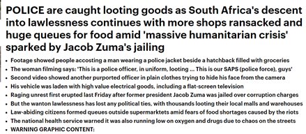 No to walczą. Podpalają i rozkradają centra handlowe ku chwale Zumy. Na szabrownictwie przypalano nawet policjanta. W zamieszkach tych zginęły już 72 osoby. Ciekawe, jak to będzie, kiedy posadzą Trumpa?