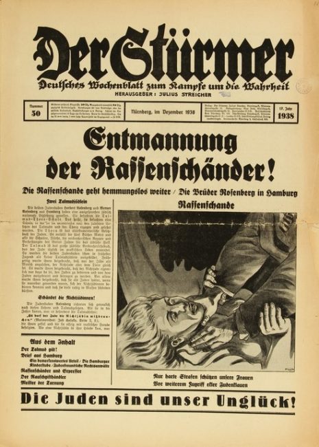 Zdjęcie okładki Stürmera z grudnia 1938 roku z kolekcji United States Holocaust Memorial Museum Holokaustu w Waszyngtonie: https://collections.ushmm.org/search/catalog/irn538811