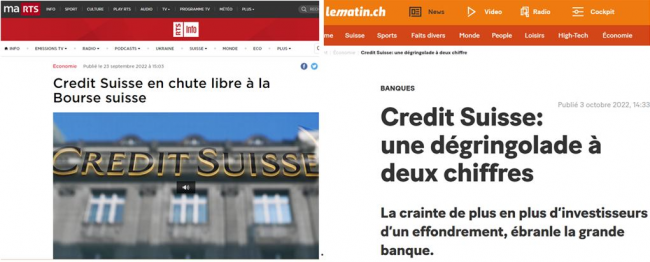 Credit Suisse, zdaniem rynków, teraz naprawdę ryzykuje. W marcu 2021 kapitalizacja rynkowa tego drugiego co do wielkości banku szwajcarskiego wynosiła ponad 30 miliardów franków szwajcarskich, a obecnie spadła do 10 miliardów. W tym samym czasie wartość akcji banku spadły o 56%.