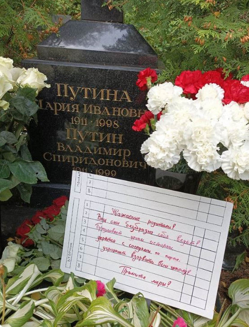 Parę dni wcześniej z urodzinowej okazji inny ‘dekret’ w sprawie Putina pojawił się w innym miejscu. Pojawił się na Cmentarzu Serafińskim w Petersburgu na grobie Władimira Spirydonowicza i Marii Iwanowny Putinów, którzy wedle oficjalnej wersji byli rodzicami władcy.