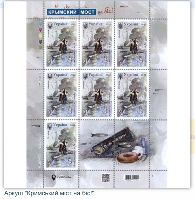Poczta ukraińska wyemitowała znaczek, upamiętniający wysadzenie w powietrze mostu kerczeńskiego, łączącego Rosję z okupowanym Krymem.