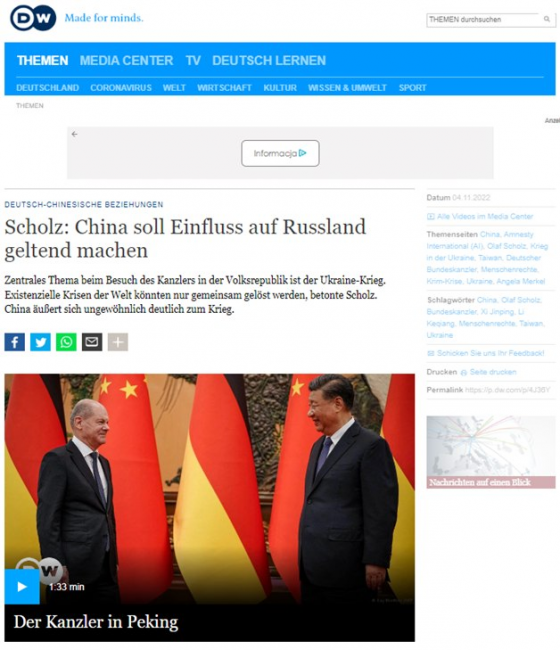 Deutsche Welle: „Scholz: Chiny powinny mieć wpływ na Rosję”