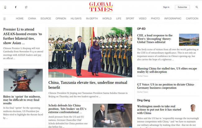 A to wersja Pekinu: pierwsza strona oficjalnego organu chińskich komunistów w wersji angielskiej – „Global Times” (https://www.globaltimes.cn/). Proszę zwrócić uwagę na hierarchię ważności wydarzeń: Tanzania znacznie wyżej niż Niemcy. …”Scholz naciska na hamulec konfrontacyjnej polityki UE wobec Chin”… —„Xi: Osiągnięte konsensusy w sprawie globalizacji, liberalizacji handlu i wielobiegunowego świata wskazywały także na przyszły kierunek stosunków chińsko-niemieckich, więzi chińsko-unijnych oraz spraw globalnych”. „Wielobiegunowy świat” w języku Pekinu i Moskwy oznacza osłabienie pozycji Stanów Zjednoczonych i Europy, a w dalszej perspektywie przemianę Chin w centrum cywilizacyjne świata. Taki to sukces odniósł kanclerz Olaf Scholz.