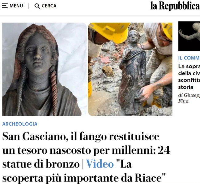 Nawarstwienie różnych cywilizacji jest we Włoszech wyjątkowe, to wiadomo nie od dziś. No, może nie wszystkim, suweren ma to w nosie, tak, jak kiedyś miał w nosie Powstania, a potem Niepodległość. Ale to taka siarczysta dygresja. D.O. jest poruszony, bo San Casciano dei Bagni, niewielkiej miejscowości w okolicach Sieny, znanej ze swych gorących, leczniczych źródeł, archeolodzy odnaleźli właśnie prawdziwy skarb: 24 posągi z brązu z okresu etruskiego i rzymskiego. Bóstwa, matrony, dzieci, cesarze. Wszystkie z okresu między II wiekiem p.n.e., a I wiekiem n.e.