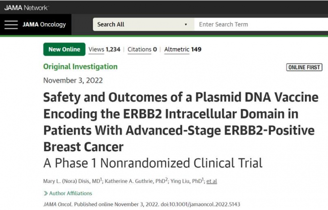 W artykule opublikowanym w piśmie Jama Oncology, naukowcy z Washington University w Seattle przetestowali eksperymentalną szczepionkę na 66 pacjentkach z zaawansowanym rakiem piersi, odkrywając, że jest bezpieczna i zdolna do generowania silnej odpowiedzi immunologicznej przeciwko białku Her2, obecnemu w 25-30% nowotworów piersi.