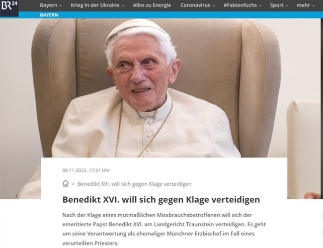 Bayerische Rundfunk 24: „Benedykt XVI wyraził gotowość obrony przed niemieckim sądem rejonowym w Traunstein. Chce się bronić przed oskarżeniem, że nie działał przeciwko seryjnemu księdzu pedofilowi Peterowi H., w czasie, gdy był arcybiskupem Monachium. Dzięki tej decyzji papieża emeryta proces, który nie ma kryminalnego znaczenia, ale może pomóc zrekonstruować wydarzenie historyczne, może być kontynuowany.