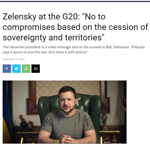 Po uczestnictwie w szczycie G20 przedstawiłem propozycje takich rozwiązań – konkretne i uczciwe. Ukraina proponuje czołowym państwom świata współtworzenie z nami pokoju.