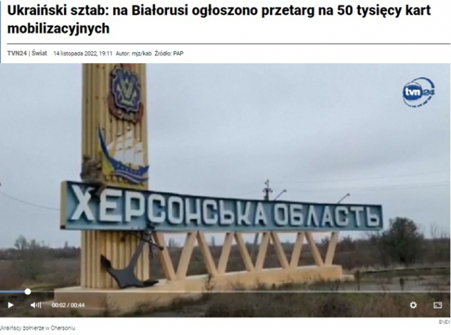 Po rosyjskim odwrocie siły ukraińskie wyzwoliły w ciągu tygodnia 179 osad, ale według Kijowa Rosjanie kontynuują działania obronne i budują fortyfikacje na lewym brzegu Dniepru oraz przygotowują ataki na ludność cywilną. Stąd apel prawowitego gubernatora obwodu chersońskiego o ewakuację cywilów: jest duże prawdopodobieństwo rosyjskich bombardowań.