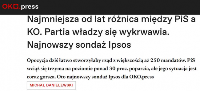 Oko.press: WYNIKI najnowszego sondaż Ipsos dla OKO.press przedstawiają się następująco: