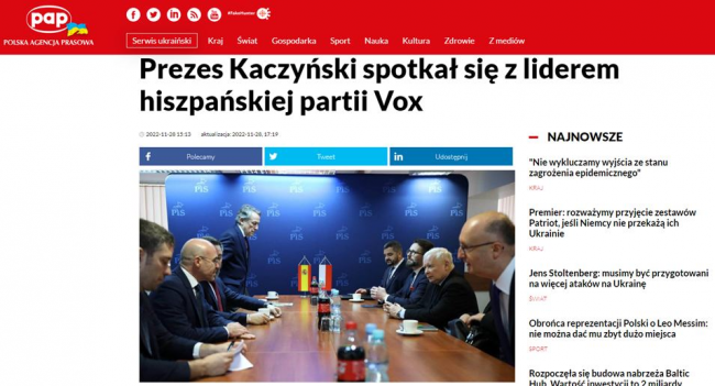 Ciul Zdradziecki spotkał się z liderem hiszpańskiej, faszystowskiej partii „Vox”, która w ostatnich wyborach, mimo wsparcia pani Giorgii Meloni – dostaje raz po raz w skórę.