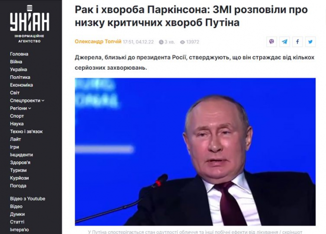 Również brytyjski „Exprees” informuje o tym, że „Putin cierpi na chorobę Parkinsona i schudł już 8 kg”. Ponadto gazeta ‘dodała’ rosyjskiemu przywódcy szereg krytycznych chorób, w tym nowotwór. ‘Putin jest krytycznie chory’ – pisze Express”.