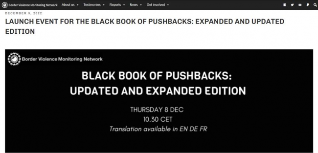 W czwartek, 8 grudnia 2022 r. Sieć Monitorowania Przemocy na Granicach opublikowała rozszerzone i zaktualizowane wydanie Czarnej Księgi Odpychania od Granic (Black Book of Pushbacks), składające się z czterech tomów o ponad trzech tysiącach stron.