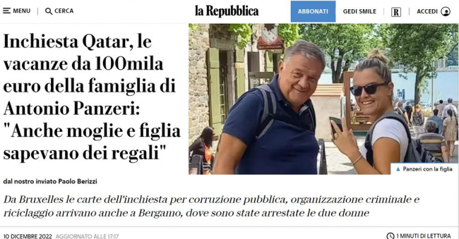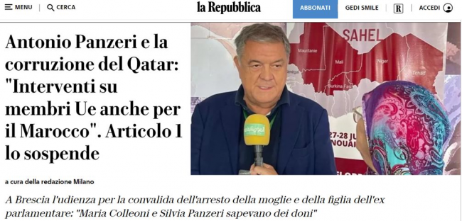 Były eurodeputowany Antonio Panzeri „jest podejrzany” o interwencję „polityczną u posłów” pracujących w Parlamencie Europejskim „za opłatą na rzecz Kataru i Maroka”. Można to przeczytać w jednym z aktów brukselskiego śledztwa w sprawie „korupcji urzędników i członków organów Wspólnoty Europejskiej i państw obcych, prania pieniędzy i przestępczej konspiracji”. W dokumencie jest napisane, że w każdym przypadku obowiązuje „domniemanie niewinności”.