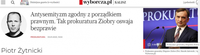 „Antysemityzm zgodny z porządkiem prawnym. Tak prokuratura Ziobry oswaja bezprawie”.