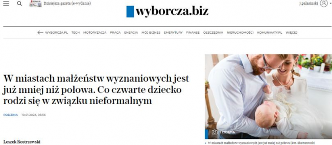 Wyborcza za GUS: „Polki rodzą dzieci coraz później. A jeśli chodzi o małżeństwa, to już co trzecie kończy się rozwodem”.