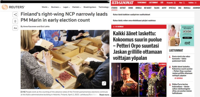 Socjaldemokraci zapowiedzieli, że z „rasistowską” – jak ją nazwała ustępująca premier Sanna Marin – Partią Finów w żadną koalicję nie wejdą, ale są gotowi współpracować z KPK. Z kolei lider KPK Petteri Orpo zupełnie tego nie wykluczył i w „przemówieniu zwycięzcy” ponownie atakował premier Marin za nadmierne wydatki socjalne.