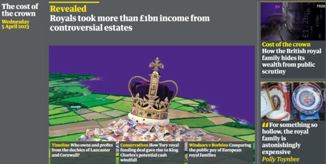Dochodzenie przeprowadzone przez Guardiana ustaliło pełną skalę dochodów uzyskiwanych przez członków rodziny królewskiej z księstw Lancaster i Kornwalia, zarządzających gigantycznymi portfelami gruntów i nieruchomości w całej Anglii.