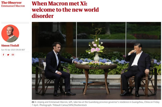 Najnowsza eksplozja została zapoczątkowana przez wywiad, którego Macron udzielił po wizycie w Pekinie w zeszły weekend, gdzie został otoczony pochlebną uwagą przez prezydenta Xi Jinpinga. Zasugerował, że jeśli chodzi o politykę wobec Chin, kraje europejskie były zbyt podporządkowane Stanom Zjednoczonym i nie powinny być „naśladowcami” Waszyngtonu. „Bycie sojusznikiem nie oznacza bycia wasalem … [i nie] oznacza, że nie mamy prawa do samodzielnego myślenia”.