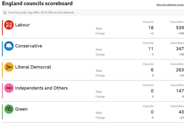 Wybory lokalne w Anglii. Partia konserwatywna dostała solidne lanie.
