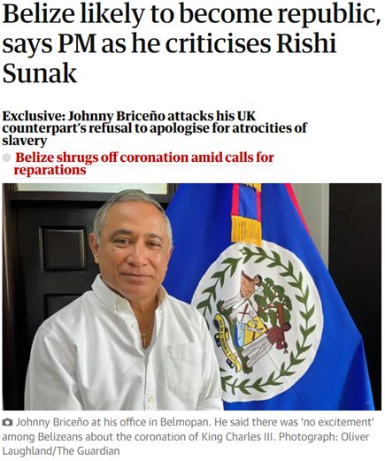 Tymczasem premier Belize, Johnny Briceño, ostro skrytykował Rishiego Sunaka, który odmówił przeprosin za rolę Wielkiej Brytanii w transatlantyckim handlu niewolnikami i powiedział, że jest „całkiem prawdopodobne”, że Belize będzie kolejnym członkiem Wspólnoty Narodów, który stanie się republiką.