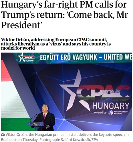 Na Węgrzech, gdzie trwa sabat nazistowski, pan Orban, strojąc się znów w szaty obrońcy chrześcijaństwa, zaapelował o powrót Trumpa do Białego Domu: „Come back Mr. President”!