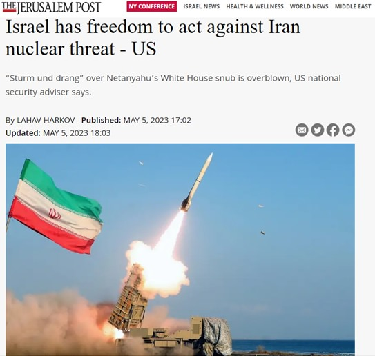 „Wyjaśniliśmy Iranowi, że nigdy nie uzyska pozwolenia na zdobycie broni nuklearnej. Jak powtórzył prezydent Biden, podejmie wszelkie niezbędne działania, aby podtrzymać tę deklarację, w tym uznanie swobody działania Izraela”.