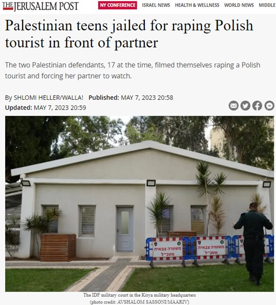 Sąd wojskowy IDF na Zachodnim Brzegu skazał dwóch palestyńskich 19-latków odpowiednio na 14 lat i sześć i pół roku więzienia oraz ukarał ich grzywną za zgwałcenie polskiej turystki w pobliżu Betlejem trzy lata temu.
