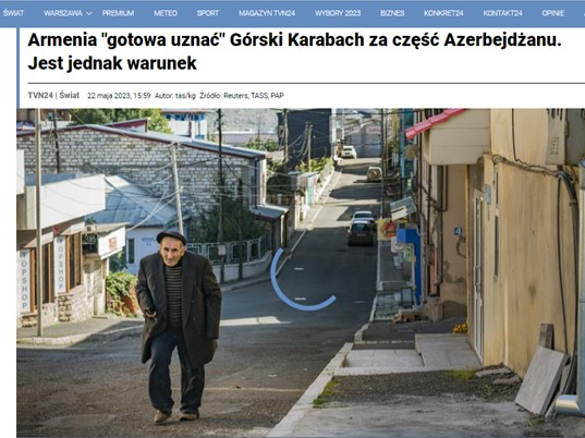 Armenia jest gotowa uznać Górski Karabach za część Azerbejdżanu – oznajmił szef armeński rządu Nikol Paszynian, cytowany przez agencję TASS. Zaznaczył, że jest gotów to zrobić, jeśli „prawa ludności ormiańskiej będą respektowane”.