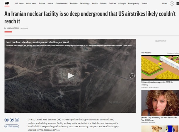 Jak donosi Associated Press Iran zaczął zakopywać znacznie głębiej niż dotąd swoje tajne linie produkcji wzbogaconego uranu i prawdopodobnie broni atomowej. W górach Zagros w środkowym Iranie budowany jest obiekt nuklearny tak głęboko pod ziemią, że prawdopodobnie nie byłoby możliwe trafienie nawet najbardziej zaawansowaną amerykańską bronią przeciwbunkrową.