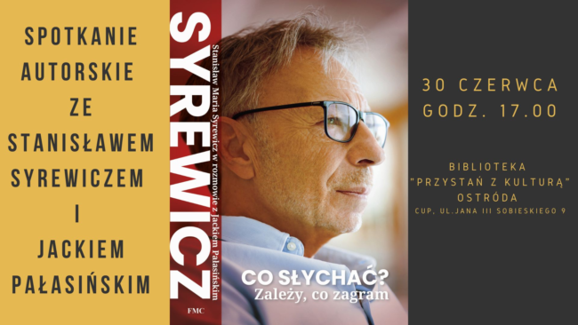 Uprzejmie przypominam, że już w najbliższy piątek, 30 czerwca, w Ostródzie – prezentacja książki/spotkanie autorskie z kompozytorem Stanisławem Syrewiczem i współautorem, skromnym pismakiem Jackiem Pałasińskim!