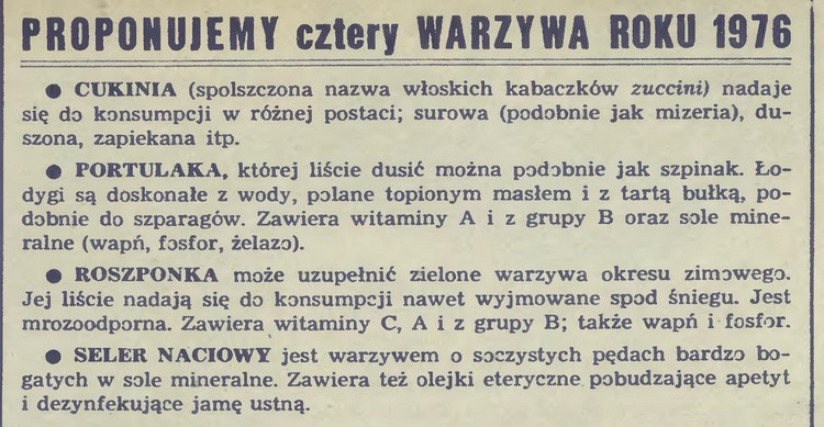 Garść warzyw mniej znanych zaproponował w roku 1976 tygodnik „Przekrój”. Czy od tego czasu nasza ich znajomość się poszerzyła?