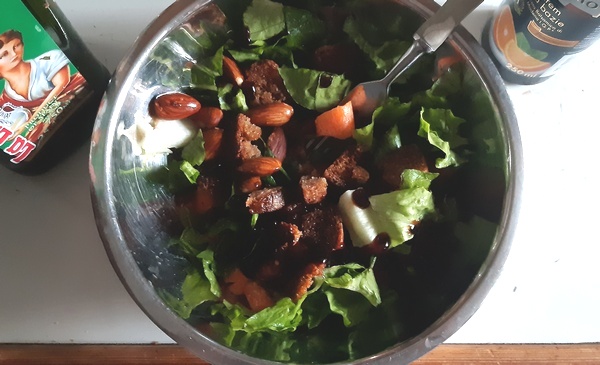 A może wzbogacić taką sałatę? Proponuję na oliwie podsmażyć migdały (mogą być nawet te w skórkach) i tuż podaniem wyrzucić do miski z sałatą takie gorące, wprost z patelni. Efekt znakomity!