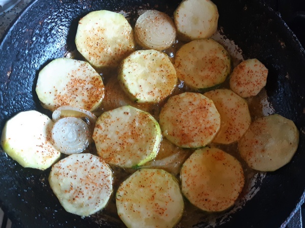 Najsmaczniejsze bywa najprostsze. Ze smażonej cukinii można przyrządzić kilka obiadów naprędce. I cukinia się nie znudzi, choć będzie traktowana podobnie. Na początek cukinie obsmażamy w oleju (może być ten z oliwek, a więc oliwa). Można ją posolić i posypać pieprzem lub słodką papryką. Smażymy po dwie-trzy minuty z każdej strony, aby tylko straciła surowość i lekko zmiękła.