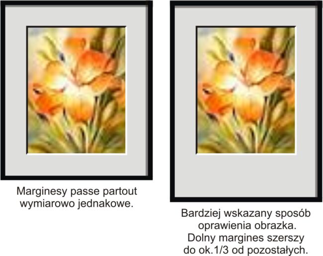Elementy ramki drewnianej po takim wypadku, zaledwie ze sobą rozszczepione, wystarczy scalić ze sobą przy pomocy kleju stolarskiego i łączników metalowych – wzorując się na sposobie przedawaryjnego ich zespolenia. Natomiast pęknięta lub połamana taka ramka wymagać będzie poważniejszej i może nawet specjalistycznej renowacji. Niewielkie obramowania metalowe zazwyczaj po upadku z niewielkiej wysokości rzadko ulegają deformacji. Szkło jednak nie często po takim zdarzeniu nadaje się do dalszego użytku. Wtedy nie obejdzie się bez odwiedzin szklarza, który przytnie – we wskazanym wymiarze powierzchni i grubości – odpowiednią taflę. Albo wycieczka do któregoś z marketów artykułami wnętrz. Handel oferuje niezliczony asortyment obramowań w licznych ich rodzajach, wzorcowych, kolorystycznych, wymiarowych… Można kupić samą ramkę, drewnianą, metalową czy wykonaną z plastiku, też ze szkłem lub zastępującym go, nie tłukącym się pleksiglasem, również z paspartu (fr. passe partout).