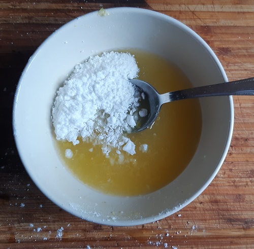 Gdy ciasto się piecze, sporządzić syrop ucierając sok z cytryny z cukrem pudrem. Ucierać do chwili, gdy zacznie lekko gęstnieć.