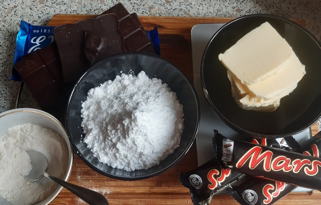 Do ciasta można dodać 100 g posiekanych drobno orzechów, najlepiej pekan lub makadamia. Marsy zaś zastąpić innymi batonikami. Wierzch ciasta można potraktować polewą czekoladową – są takie gotowe, w torebkach lub w proszku. Oczywiście, można na polewę roztopić kolejną tabliczkę gorzkiej czekolady (200 g). Ale to już zbytek, dla wyjątkowych gości.