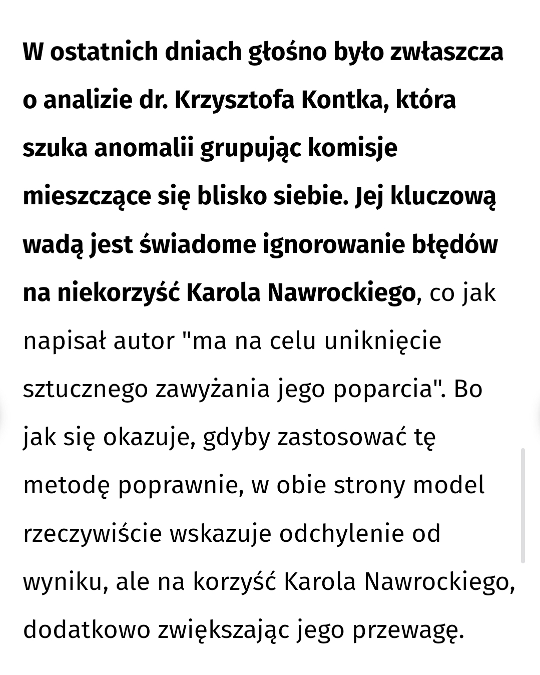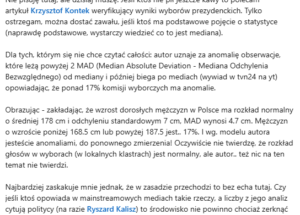 Niestety nie mogę się zgodzić z artykułem i opinią dr Kontka. Inni statystycy nie zostawili suchej nitki na tej analizie i błędach, które popełnił. Proszę spojrzeć na ten merytoryczny artykuł. Dla jasności autorem jest również statystyk.