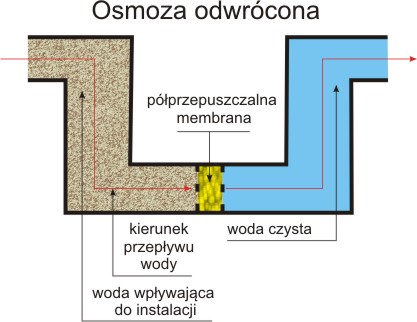 W urządzeniach działających na zasadzie odwróconej osmozy woda, po wstępnym oczyszczeniu, przechodzi przez półprzezroczystą membranę o porowatości zatrzymującej zanieczyszczenia. Takie filtry skutecznie usuwają prawie wszystkie zbędne elementy, łącznie z metalami ciężkimi. Niestety, jednocześnie pozbawiają wody soli mineralnych. Poza tym są drogie i również wymagają – choć rzadziej – wymiany wkładów filtrujących.