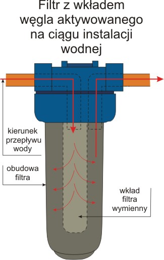 W filtrach z węglem aktywowanym woda jest filtrowana poprzez warstwę granulowanego węgla, absorbującego zanieczyszczenia, głównie pochodzenia organicznego, także chlor i jego pochodne. Wadą tej metody jest konieczność częstej wymiany wkładów filtrujących, ponieważ dochodzi w nich do szybkiego rozwoju bakterii. Zaletą jest powszechna do nich dostępność. Umieszczony na początku domowej instalacji wodnej duży filtr węglowy może stanowić pierwsze ogniwo centralnego, miejscowego systemu uzdatniania.